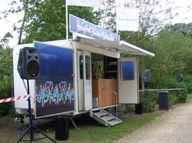 This allowed us to upgrade to our current outside broadcast mobile studio – an all weather trailer fully equipped with cables, amplifiers, audio mixing desk, generator and speakers.